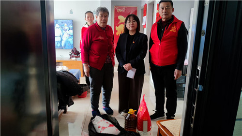 党员志愿者身着“红马甲”逐户登门,为困难家庭、残疾家庭、低保户送上米面油等生活物资。走访中,志愿者与群众促膝长谈,细致询问生活起居与医疗保障情况,倾听诉求、登记“需求清单”,现场协调解决问题;为独居老人打扫房间、检查取暖设备,手把手教用便民联系卡,叮嘱冬季用火用电安全。同时,志愿者们还给群众讲解医疗救助、养老服务等惠民政策,将物质帮扶和政策实惠稳送到群众手上。